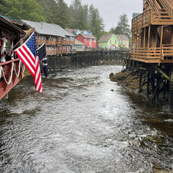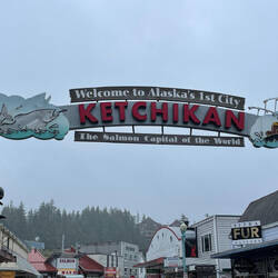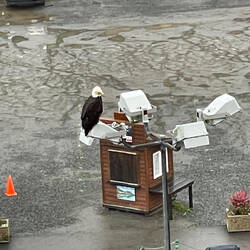 Gleich bei meiner Kabine in Ketchikan saß ein Weißkopfseeadler auf einem Straßenlicht und ich hab auch viele fliegen sehen. Die ganze Gegend ist voll damit.