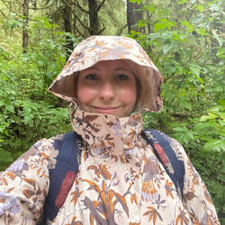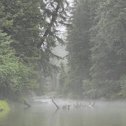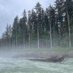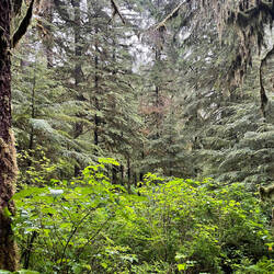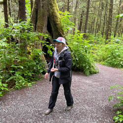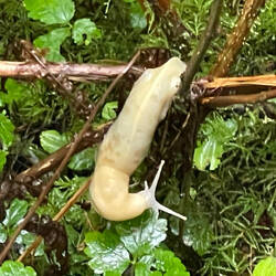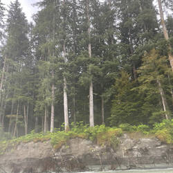 Überall sahen wir eine besondere Art von Nacktschnecken: eine Banana Slug. Unsere Guide hat wohl mal an ihnen geleckt (😂) und ihre Zunge wurde erstmal taub. Diese Nacktschnecken haben eine besondere Haut, quasi keine Pflanze kann ihnen was anhaben. Auch nicht der „Devil‘s Club“, welcher feine Dornen mit Spikes an den Blättern und Zweigen hat, die Slugs essen trotzdem. Für uns keine gute Idee, die Dornen haben Widerhaken, dann folgt Entzündung und allergische Reaktion usw.