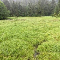 Spuren von Bären sah ich überall: Umgeknicktes Gras, Tatzenabdrücke im Schlamm, „Bear trails“ in der hohen Wiese und herausgerissene Wurzeln vom Skunk Cabbage (sieht aus wie überdimensionaler Feldsalat): Diese Wurzeln essen die Bären gerne nach ihrem Winterschlaf, denn sie fungieren wie Dulcolax😂 klar, nach Monaten im Winterschlaf ist die Verdauung etwas träge.
