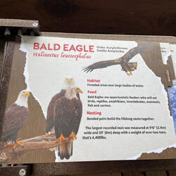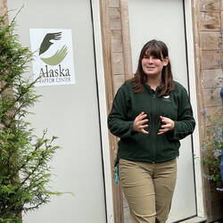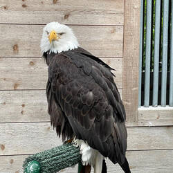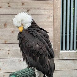 Die Weißkopfseeadlerin Sitka hat Probleme mit ihren Flügeln und hat einen gebrochenen Zeh: sie kann sich selbst deswegen nicht versorgen, denn sie kann nichts schweres greifen. Sie lebt schon eine ganze Weile im „Raptor-Gehege“.