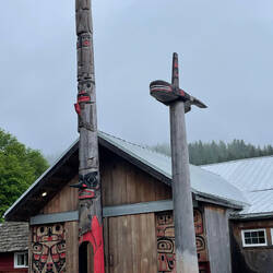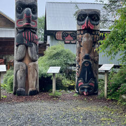 Nach meinem Frühstück zog ich mich warm und regenfest an und um 6:30 Uhr bin ich von Bord gegangen. Ich hatte die folgende Tour gebucht: „Rainforest Sanctuary Nature Walk, Totems & Eagles“ und war gespannt. Es nieselte und war grau, das ist wohl das normale Wetter hier. Yay.