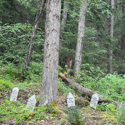 Dies war der Wilde Westen. Wenn jemand erschossen wurde, schaute man in seinen Taschen nach Hinweisen nach seiner Identität. Dann wurde er vertikal in ein Grab beerdigt (die Gräber wurden gesprengt), und man hat sein Sterbedatum und sein geschätztes Alter auf eine weiße Platte geschrieben und diese als Grabstein aufgestellt.