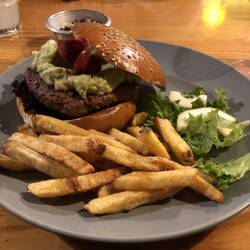 Die Dusche genoss ich so sehr und abends gingen wir essen: es gab Burger mit Guacamole und Bacon😍 danach Mousse au Chocolate als Dessert. Dazu Piña Colada und Bier.