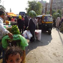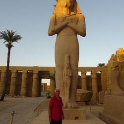 We had to get up just after 5am, it was a bit chilly still on the Nile! We had breakfast and then went by bus to Luxor, a four hour drive. We passed through a lot of rural area, and saw many peopleLæs mere