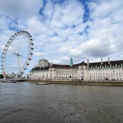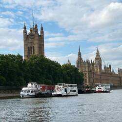 Scenic cruise of the Thames River from Richmond to Central London and walking tour through central London town. Featuring many Rowing Boathouses, Club boats, and landing at Westminster. (Part 1 of 2)