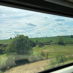 Beautiful train ride on a perfect spring day from London to Manchester. Had a lovely visit to Andrews garden 🪴 and met his adorable little doggies too.