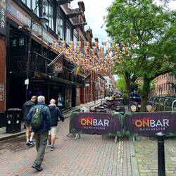 Lovely dinner with friends old and new on Rochdale Canal of the national canal and river trust in central Manchester
