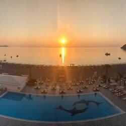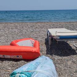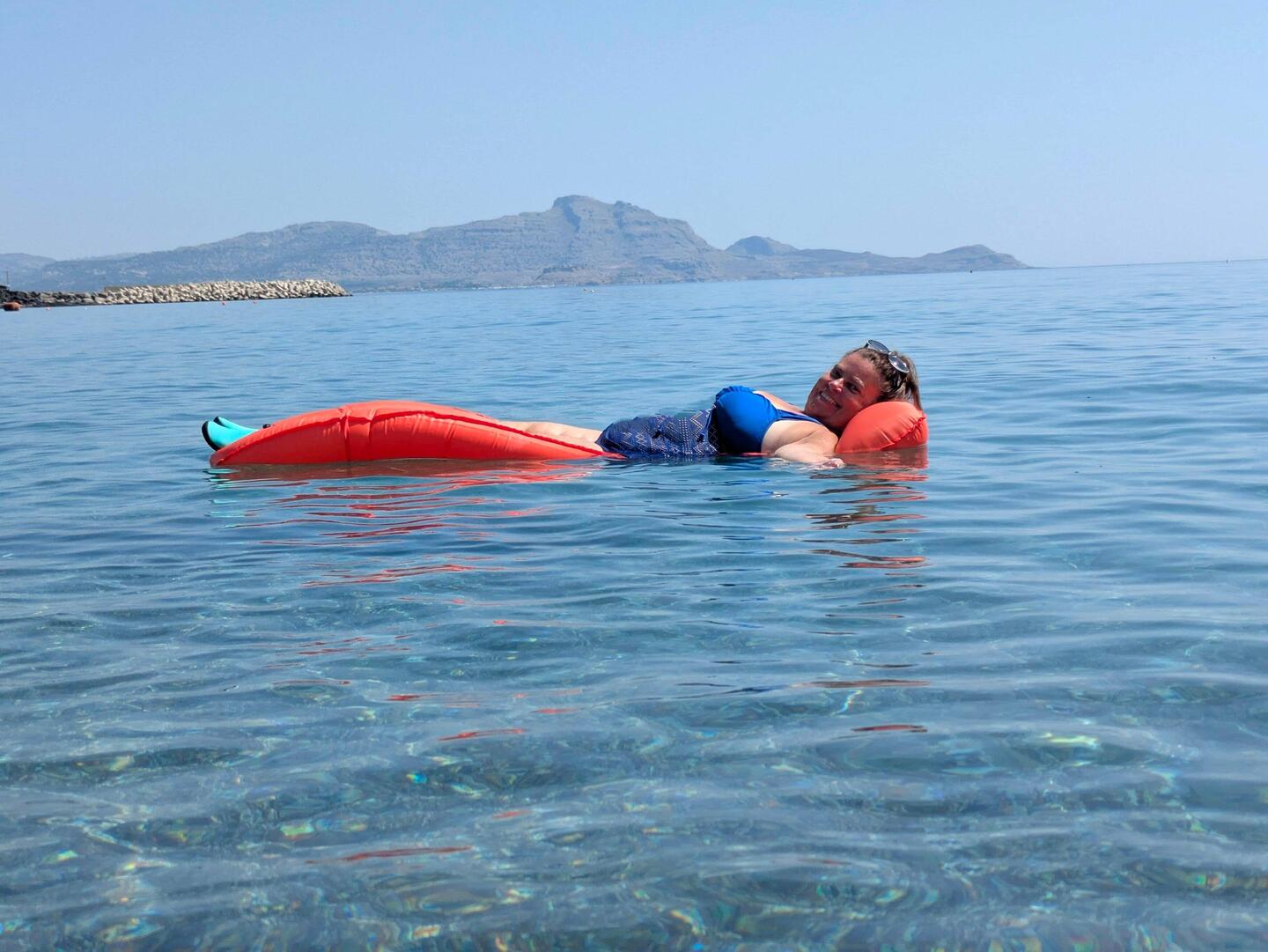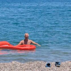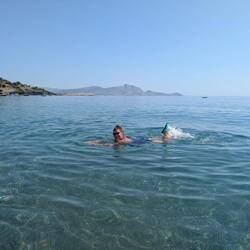 Heute wollen wir noch mal einen vollen Tag am Strand verbringen. Wir schwimmen, floaten auf den Wasser-Hängematten, nehmen noch mal einen Greek Salad und Cesar Salad in unserer Lieblings- Taverna "Banana Beach Bar" ein.