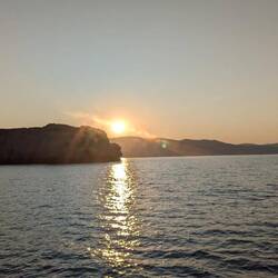Auf der Rückfahrt sehen wir die Sonne ☀️ hinter den Bergen verschwinden. Cocktails 🍹🍸 werden angeboten und mit stimmungsvoller Musik genießen wir die besondere Atmosphäre.