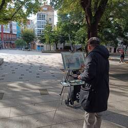 Wir laufen zur geschichtsträchtigen Plaza de María Pita. María Mayor Fernández de Cámara y Pita, bekannt als María Pita, wird als eine Heldin bei der Verteidigung von La Coruña, Nordspanien,Read more