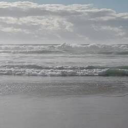 Direkt neben dem Hafen gibt es einen riesigen Strand. Riesige Wellen. Nur ein paar mutige Surfer trauen sich ins Wasser.