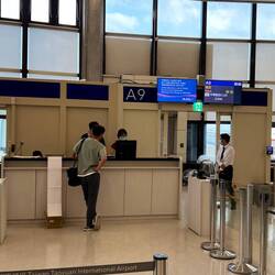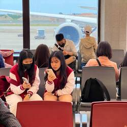 So many people at custom. We could use APEC line but we didn’t. Queuing up the line with the kids.