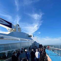 Got up at 4:20. Very long line and check in. Thank God we have priority thru security.