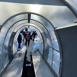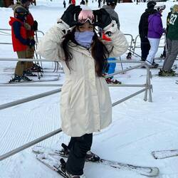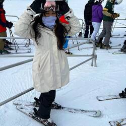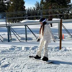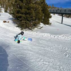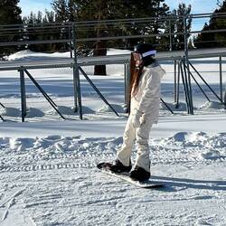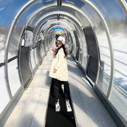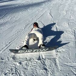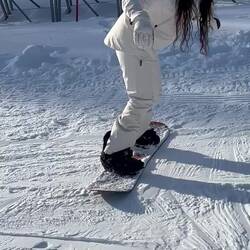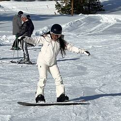 Celine tried to learn snowboard herself. We are going to hire a coach tomorrow!