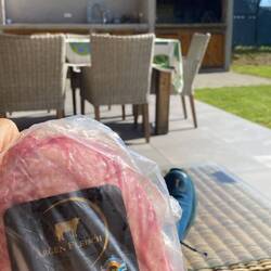 瑞士好友邀請我到他在 St. Gallen 的家中吃飯. 原以為他說要 BBQ 是像美國人那樣漢堡火腿… 誰知他們夫妻搞出來了 6 courses big dinner! 還烤了一整隻 Tom Hawk!