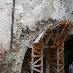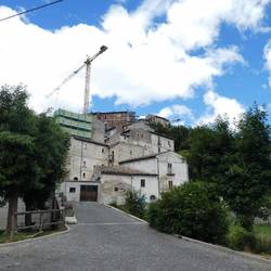 Man fragt sich vielleicht, wieso macht man dort Urlaub? Nun, trotz alledem ist es ein sehr schönes Land. Eine interessante Gegend in Italien und es ist ein Stück Heimat, welche ich nie so ganz begriffen habe. Soviel Gegensätze und so voller Menschen, die noch gastfreunlich, geschäftstüchtig und auch schlitzohrig sind. Überlebenskünstler, die bleiben und sich nicht vertreiben lassen. Die einfach leben und stolz auf ihre Abruzzen sind. Am Montag Morgen starteten wir mit der Erkundung von Santo Stefano. Was sofort ins Auge fiel, waren die vielen eingerüsteten Gebäude, die Kräne und die Menschen, die an ihren Häusern arbeiteten. Der Ort liegt sehr schön auf einem Hügel und ist schon mindestens 1000 Jahre alt. Aber es sind auch Spuren aus Römischer Zeit zu finden. Urkundlich benannt wird Santo Stefano erstmals im 13. Jahrhundert. 2009 fiel der Turm, das Wahrzeichen der Stadt, einem Erdbeben zum Opfer. Er ist, wie vieles hier in den Abruzzen, noch nicht wieder aufgebaut. Ein Metallgerüst steht dort in Originalgröße des ehemaligen Turms. Lange Zeit war nicht klar, ob er wieder aufgebaut werden sollte. Zu viele Häuser wurden zerstört. Zuvieles musste wieder rekonstruiert und repariert werden. Zuviele Menschen verloren ihr Dach über den Kopf, da war wohl ein Turm zu unwichtig. Außerdem nahmen andere Städte viel mehr Aufmerksamkeit in Anspruch. Da ist L’Aquila und Onna. Dort war das Epizentrum. Dorthin flossen viele Spenden und viel Geld. Sie standen in der Öffentlichkeit. Ich bin in den letzten Jahren oft durch das Erdbebengebiet gefahren. Ich sah, wieviele alte Dörfer betroffen waren, wie groß die Schäden sind. Viele Bauerndörfer und viele Kirchen und Klöster waren betroffen, aber nie hörten wir irgendwas. Ich weiß nicht, wer entschädigt wurde und wem geholfen wurde, aber es ist schon sehr befremdlich, wenn ich heute durch Dörfer fahre, in denen es immer noch rote Zonen gibt. Andererseits wurde der Aufbau der Kirche in Onna finanziert und den Ort gibt es gar nicht mehr. Wir waren gestern noch da, da steht eine frisch renovierte und neu aufgebaute Kirche in einem Dorf, das nur noch aus Schutt und Asche besteht. Diese Kirche sieht sehr gut aus, es gibt nur keine Menschen, die dort zu Messe gehen, weil diese Menschen heute an einem anderem Ort, zwar sehr nahe, aber eben sehr neuem Dorf leben mit einer neuen Kirche. Onna war ein sehr altes und armes Dorf. Die einfachen Häuser, in denen die früheren Einwohner von Onna heute leben, sind besser als die alten, in denen sie vorher lebten. Zwar bedauern einige alte Menschen, dass es ihr altes Dorf nicht mehr gibt, aber sie bauen es nicht mehr auf. Warum auch?