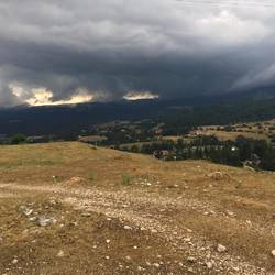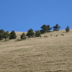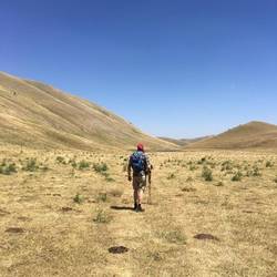Menschen haben wir keine getroffen, aber dafür hat uns ein gutes Stück ein Wolf begleitet. Er hielt Abstand: Wir unten in einer weiten Schlucht, er oben am Hang. Sein Rudel entdeckten wir nicht. Er war wohl die Vorhut. Irgendwann war er dann auch verschwunden oder wir sahen ihn einfach nicht mehr.