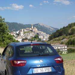 Nachdem wir einen ersten Eindruck von Santo Stefano gewonnen haben, machten wir uns auf dem Weg zu einer nah gelegenen Burg. Nur ein kurzes Stück die Straße entlang aus Santo Stefano herraus und dann einfach über sanfte Hügel hinauf, immer der rot-weißen Markierung nach. Ich fragte mich wieder einmal, wieso Markieren die Italiener ihre Wanderwege immer alle mit rot-weißen Balken? Woran erkennt der Wanderer, dass er immer noch auf dem richtigen Weg ist, wenn sich mehrere Wege kreuzen? Es bleibt für mich ein Rätsel. Wir wanderten bergauf über Schafsweiden, Geröllstrecken und baumlose Hügel. Von der Burg war lange nichts zu sehen, aber dafür wurde die Aussicht auf die umliegende Berge immer besser. Auch konnten wir das eine oder andere Dorf an den Felshängen ausmachen. Das ist also das Land, das wir versuchen mit unseren Füßen zu erkunden und mit allen Sinnen kennen zu lernen. Endlich kam die Kirche und die Burgruine in Sicht. Aber Sichtweite heißt noch lange nicht schon da zu sein, aber zumindest die Orientierung wurde einfacher. Es ist für den ersten Urlaubstag eine anstrengende Wanderung, die lange Autofahrt steckt uns noch in den Knochen. Aber es lohnt sich, die wundervoll klare Luft, die Stille und dann der Anblick der Burg. Sie heißt: Rocca Calascio und sie erhebt sich im Inneren der Abruzzen und ist die mit 1.460 m höchstgelegene, ungefähr 1000 Jahre alte Burganlage. Später wurde die Anlage zu einer kleinen, aber starken Festung ausgebaut, die allerdings nie belagert worden ist. Bereits im 10. Jahrhundert soll hier ein Wachturm errichtet worden sein. Wie vieles in Italien wurde sie in den Jahren 1461 und 1703 bei sehr schweren Erdbeben stark beschädigt. Während der Ort Calascio, der unterhalb der Festung liegt, wieder aufgebaut wurde, geschah dies bei der Festung nicht. Rocca Calascio war der Drehort für die letzte Szene des Films "Der Tag des Falken“. Neben der Burg errichtete man eine Kirche, deren Bedeutung ich nicht kenne. Ihre Lage macht sie jedoch zu etwas Besonderem. Man gewinnt den Eindruck, als könne man mit ihr als Ziel ein Stück Paradies erwandern. Fest steht, dass diese Kirche auf den Resten eines Tempels erbaut wurde, aber wen wundert dieses? Für uns hat sich die Wanderung gelohnt. Wir sind in unserem Urlaubsort angekommen, es war ein genialer Einstieg.Read more