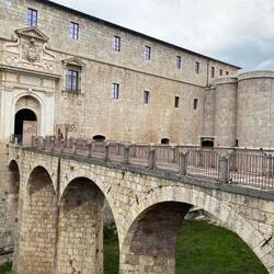 Von dort aus schlendern wir durch die engen Gassen, die von charmanten, historischen Gebäuden gesäumt sind. Ein kurzer Halt am Palazzo dell'Emiciclo, wo wir die interessante Geschichte der Stadt erfahren können, ist lohnenswert. Auch das Castello Cinquecentesco, eine Festung, die den Blick auf die Stadt dominiert, bietet einen faszinierenden Einblick in die militärische Vergangenheit L'Aquilas.