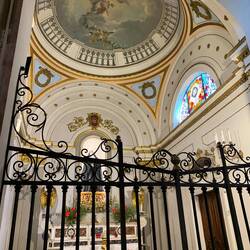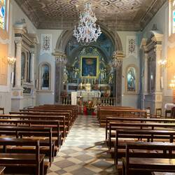 Die beeindruckende Kathedrale, die eine faszinierende Mischung aus romanischen und gotischen Stilen präsentiert, beeindruckt durch ihren reich verzierten Innenraum mit wunderschönen, sehr alten Fresken.