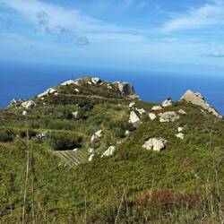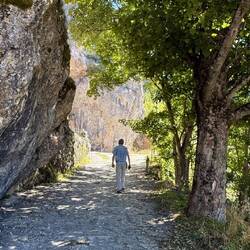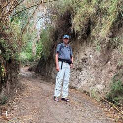 An einer Stelle wurde Herbert ein bisschen merkwürdig. Er war vor mir und hatte an einem großen Felsen seine liebe Mühe, ihn zu erklimmen. Der Kerl hat lange Beine, aber der Tritt war einfach zu hoch, um sich da hochzudrücken. Also kam ich ihm von hinten zur Hilfe und schob ihn am Po nach oben. Oben angekommen, marschierte er einfach weiter. Ich fragte nur: "Und ich?" Seine Antwort: "Wir müssen Abstand halten, damit, falls einer ausrutscht, nicht der andere mitgerissen wird."