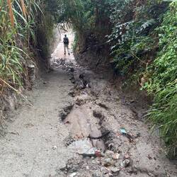 Doch der Spaß hörte hier nicht auf! Die Gondel war heute mal wieder im Streik. Also beschlossen wir spontan, den Arno entlang zu wandern, bis nach Pietricamela. Das klang nach einem Abenteuer – bis wir herausfanden, dass der Wanderweg durch mehrere Erdrutsche einfach weggespült worden war.