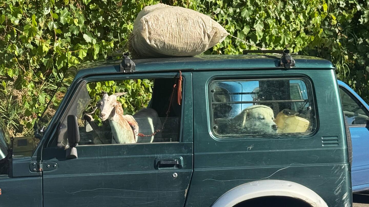Zum Beispiel eine Ziege, die es sich im Auto auf dem Fahrersitz bequem gemacht hatte, während vier Hunde fröhlich auf der Rückbank herumtollten. Dann war da noch eine Hausruine, die sich als schlichter Felsen entpuppte, und ein Weg, der eher wie ein antiker Wasserkanal aus Römerzeiten wirkte. Und die seltsamen Früchte an den Bäumen – ich bin mir nicht sicher, ob die zum Essen oder zum Staunen gedacht waren!