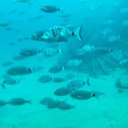 Besonders eindrucksvoll war der Anblick eines Stachelrochens, der majestätisch über den Meeresboden glitt, und eines Engeshais, das ich ebenfalls entdeckte. Zahlreiche Fischschwärme umschwärmten das U-Boot, wobei die meisten von ihnen eher unauffällig in silberner Farbe mit schwarzen Punkten oder Streifen waren. Doch ein farbenfroher Pfaufisch stach hervor und brachte Leben in die ansonsten schlichte Unterwasserlandschaft. Der geräuschlose Tauchgang, ermöglicht durch den 100 % elektrischen Antrieb, ließ mich die Ruhe und Schönheit des vulkanischen Meeresbodens in vollen Zügen genießen und schärfte mein Bewusstsein für den Schutz dieser fragilen Ökosysteme.