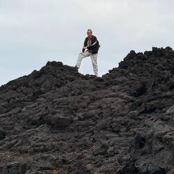 Der Abstieg entlang des westlichen Kraterrands war ein bisschen wie ein Tanz, bei dem wir uns geschickt über die unebenen Wege bewegen mussten. Nicht immer sah unser Tanz anmutig aus, manches Mal kamen wir ins Rutschen. 2x mal setzte ich mich einfach auf den Hosenboden um sicherer runter zu kommen. Ich konnte mir vorstellen, dass die Vulkane uns heimlich zuschauten, während wir über die Lavaflüsse stolperten. , als ob wir Teil eines großen Naturtheaters waren.
