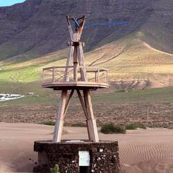 Mit ihren drei beeindruckenden, bis zu 15 Meter hohen abstrakten Eisenformen prägt sie die Aussicht auf die Bucht von Playa las Cucharas. Diese Skulpturen sind zu einem ikonischen Symbol des besten Windsurfgebiets auf Lanzarote geworden und haben Millionen von Urlaubern angezogen.