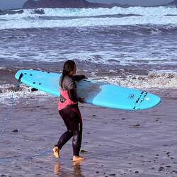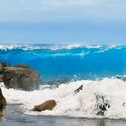 Der Himmel ist bewölkt, was eine besondere, mystische Stimmung schafft. Der starke Wellengang und die Brandung schlagen bis über die Steilküste, und immer wieder werden wir durch die Gischt nass. Doch diese Naturgewalt gibt uns positive Energie und lässt das Adrenalin durch unsere Adern pulsieren.