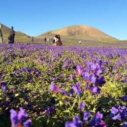 Besonders bemerkenswert sind die Vulkanhügel und Lavafelder, die in einem intensiven Blau und Violett blühen. Diese unerwarteten Farben scheinen aus einem Märchen zu stammen und ziehen nicht nur Touristen, sondern auch die Einheimischen an. Die Menschen versammeln sich an diesen faszinierenden Orten, um die Farbenpracht zu bewundern und das Leben zu feiern. Es ist ein wahrhaft gemeinschaftliches Erlebnis, das die Herzen höher schlagen lässt.