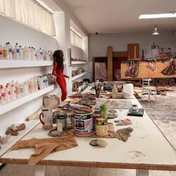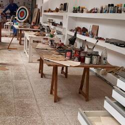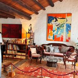 Ein Höhepunkt des Besuchs war die Werkstatt, die Manrique bis zu seinem Tod nutzte. Hier lebte und arbeitete er, und die Zeit schien stillzustehen. Die Werkstatt war ein Ort der Inspiration, der alles so bewahrte, wie der Künstler es hinterlassen hatte. Überall standen seine Werke, die auf den ersten Blick chaotisch wirkten, aber bei näherer Betrachtung eine tiefere Bedeutung offenbarten. Manrique hatte oft am Boden mit seinen Ideen begonnen und sie später an die Staffeleien vollendet. . Es war spannend zu sehen, wie seine Gedanken in verschiedenen Phasen entstanden waren.