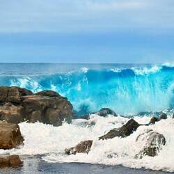 Inmitten der rauen Schönheit von L'Hervideros auf Lanzarote spürte man die unbändige Kraft der Natur. Der starke Wind peitschte über die Klippen und ließ das Wasser gegen die dunklen Lavafelsen toben. Es war, als ob die Elemente selbst tanzten, als die Wellen mit einem ohrenbetäubenden Krachen auf die Felsen schlugen und dabei schäumende Gischt in die Luft schleuderten.