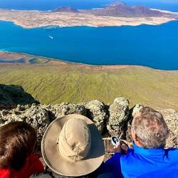 Ein Höhepunkt unseres Besuchs war der atemberaubende Blick vom „Risco de Famara“. Um dorthin zu gelangen, fuhren wir eine kurvenreiche Straße durch die beeindruckende Landschaft, vorbei an Windrädern, bis wir die kleine Kirche „Ermita de las Nieves“ erreichten. Dort oben, in etwa 650 Metern Höhe, eröffnet sich ein spektakulärer Blick auf die Bucht von Famara, den Atlantik und die benachbarte Isla La Graciosa. Die hoch aufragenden Lavafelsen, die steil aus dem Meer emporragen, sind ein imposantes Zeugnis der geologischen Geschichte dieser Region.