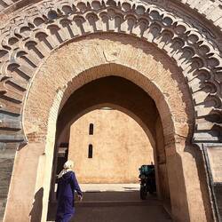 Anschließend machten wir einen kurzen Stopp am Bab Agnaou, einem der eindrucksvollen Stadttore von Marrakesch. Das Tor ist ein wunderbares Beispiel für die maurische Architektur und bot uns eine schöne Fotomöglichkeit.