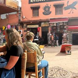 Ein schöner Ausklang des Tages. Wir suchten uns ein Restaurant auf einem Dach um das Treiben zu beobachten und dabei Marokkanische Köstlichkeiten zu genießen Platz pulsiert vor Leben, mit Straßenkünstlern, Musikern und Essensständen. Wir beobachteten das bunte Treiben um uns herum. Die Energie dieses Ortes war ansteckend und hinterließ einen bleibenden Eindruck.
