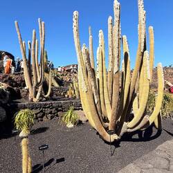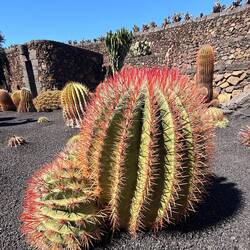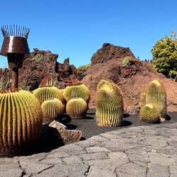 Wir besuchten den Jardín de Cactus, eine beeindruckende Schöpfung von César Manrique in Guatiza, Teguise. Der Garten beherbergt etwa 4.500 Kakteenarten aus fünf Kontinenten.