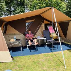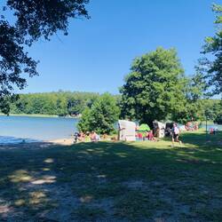 In Zwenzo am „Großer Labussee“ angekommen. Das erste mal alles selber Aufbauen inclusive Küchenzelt.