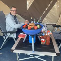 Gemütlicher Abend mit Campern am Lagerfeuer mit
