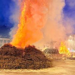 Das Highlight des Abends waren die spektakulären Feuerwerke und die beeindruckenden Holzpyramiden, die in Flammen aufgingen. Die Atmosphäre war lebhaft und festlich, mit vielen Menschen, die zusammenkamen, um die Rückkehr des Lichts zu feiern.