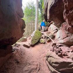 In den drei Tagen, die wir im Dahner Felsenland verbracht haben, waren wir von der einzigartigen Schönheit der Region begeistert. Die roten und gelben Buntsandsteinfelsen, eingebettet in grüneLäs mer