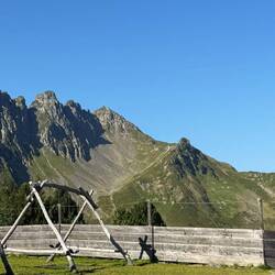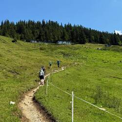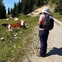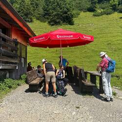 Nach einem ausgiebigen Frühstück, das uns die nötige Energie für die nächste Wanderung gab, machten wir uns auf den Weg – und zwar über den großen Parkplatz des Hotels Almhof, der unsLäs mer