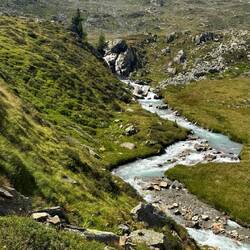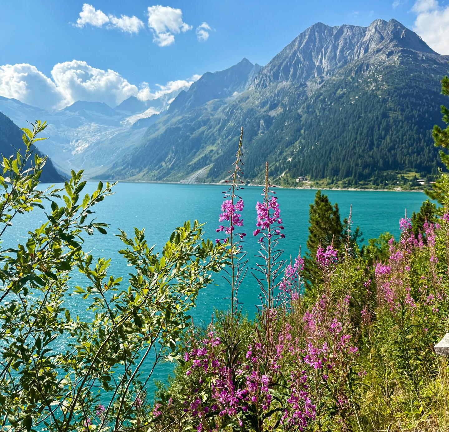Also, wir starteten direkt nach der beeindruckenden Staumauer des Schlegeisspeichers. Von dort aus ging’s oberhalb des glitzernden Sees weiter ich versuchte, nicht in die kühleLäs mer