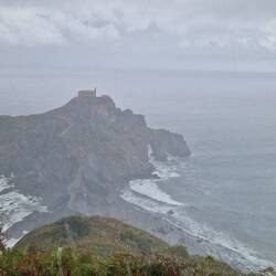 Ein schmaler, steiniger Weg verbindet im steilen Zickzack das 200 Meter entfernt liegende Festland mit San Juan de Gaztelugatxe. Von hier aus lässt sich die von Steilküsten und FelsbrockenLue lisää