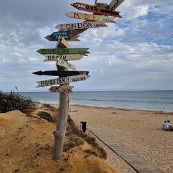 Entlang der Küste kamen wir beim Urlaubsort Albufeira an. Während Monika surfen war, klapperten Felix und ich die Souvenirläden nacheinander ab und fanden ganz interessante Sachen.