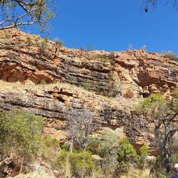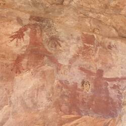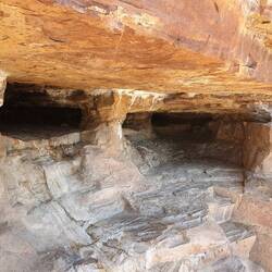 Driving up King River Rd near the Moochalabra Dam is the site for some interesting aboringinal caves and rock art. Was a bit of a climb up and scramble down but use oldies managed ☺