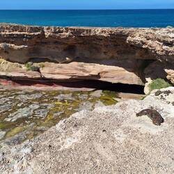 Popped into Streaky Bay this morning to do a supply run. Have been here before before, so keep going to Woolshed Cave. Another great free camp on the coast. Blowing a gale. We're going to stay aEn savoir plus