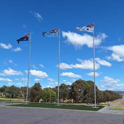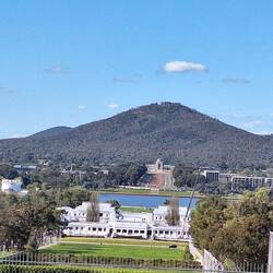 Afte our visit to the War Memorial, we drove up to the Mount Ainslie Lookout. A fantastic view of Canberra spread out before us. Didn't stay long as it was blowing a gale, and just a little bit chillyLeggi altro
