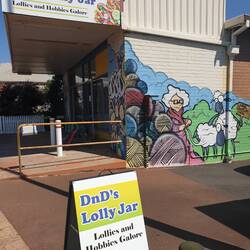 Some fantastic murals on the showground buildings. Will go for a walk up town later. Found this fantastic store that sold lollies and the owner loved crocheting so she had a corner of yarn. Plus did light meals and giftware. Had all the bases covered.Baca lagi